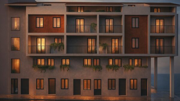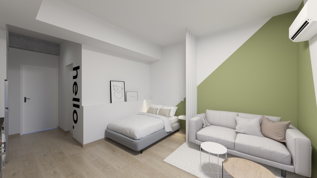 Tetris-style renovation project, each apartment in a different color palette